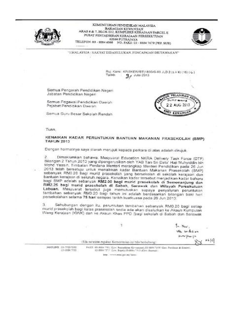 Ii Kadar Kenaikan Peruntukan Bantuan Makanan Prasekolah Bmp 31 Julai 2013 Pdf